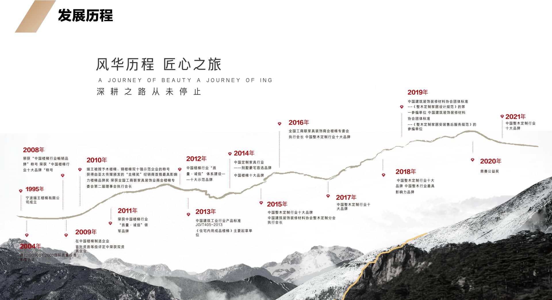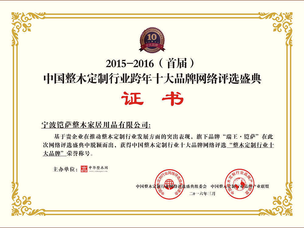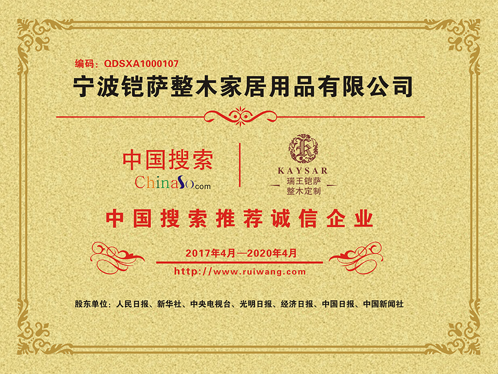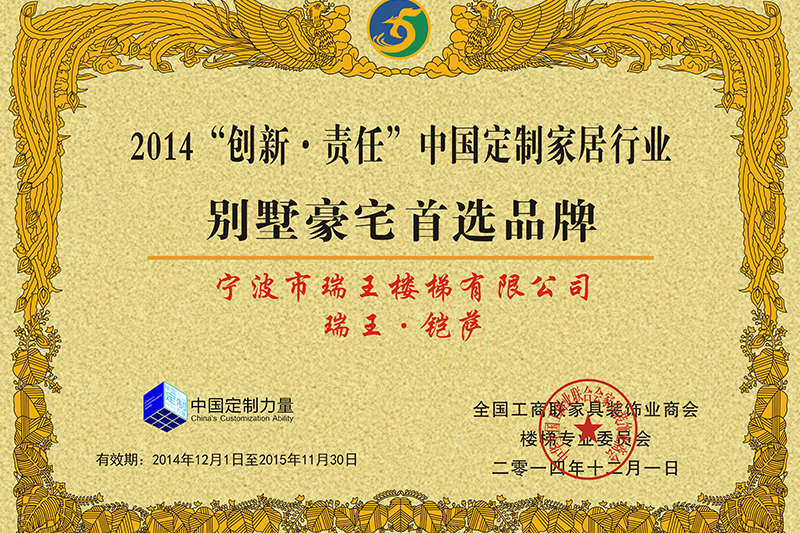總部座落于浙江寧波,至今已有27年歷史,是我國樓梯行業的先驅企業。2009年,瑞王向原木定制行業邁進,前瞻性的以“瑞王·鎧薩”的品牌形象成功的把產業延 伸到了木門、護墻板、櫥柜、衣帽間、酒柜、書柜、吊頂等全原木定制領域,優化調整了研發、 設計、生產、檢測、施工程序,完善了管理體系和質量控制體系。同時,在2019年根據市場環 境和品牌形象,打造了極簡高端全屋定制品牌—瑞王·CARO,以簡潔而又具有設計感的家居形象,深入到人們日常生活當中。