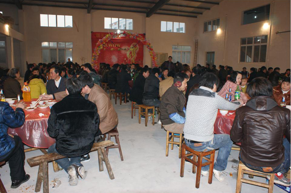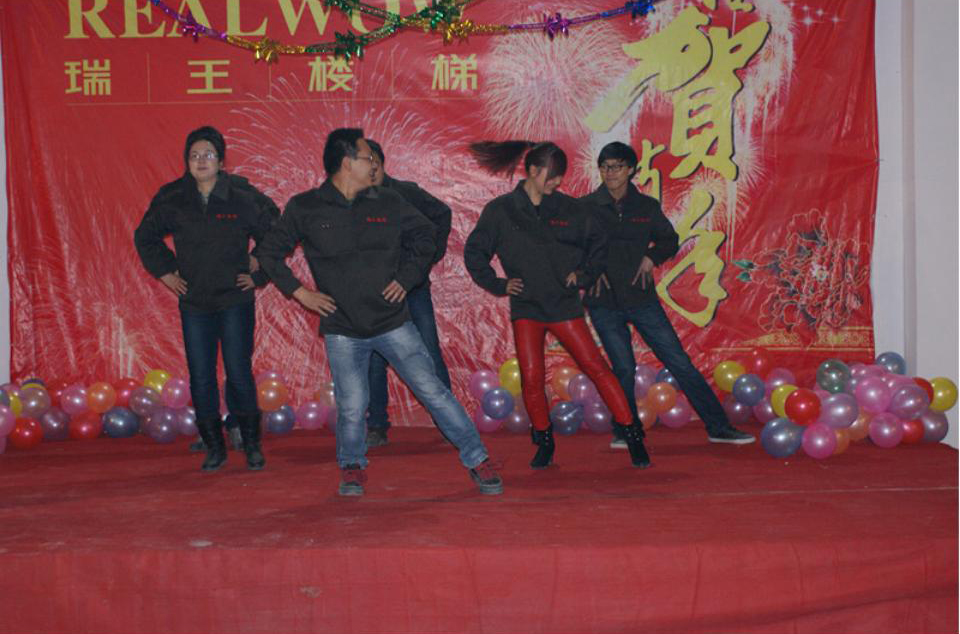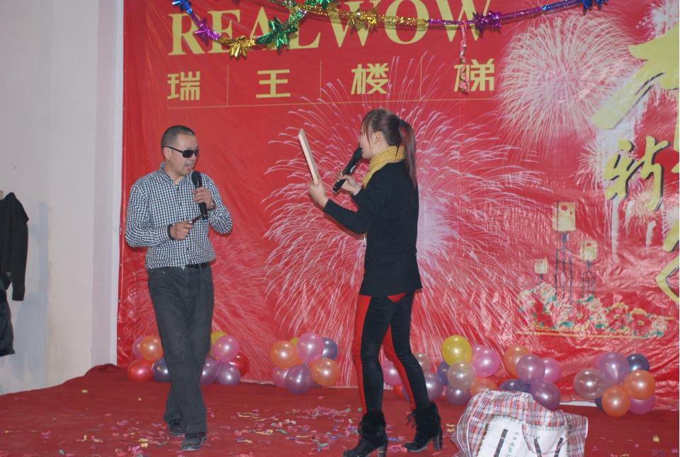 伴隨著主持人的講話,瑞王樓梯2012年的迎新聯(lián)歡會正式開始了。聯(lián)歡會分為兩個部分,一是吃團年飯,二是文藝表演及抽獎。