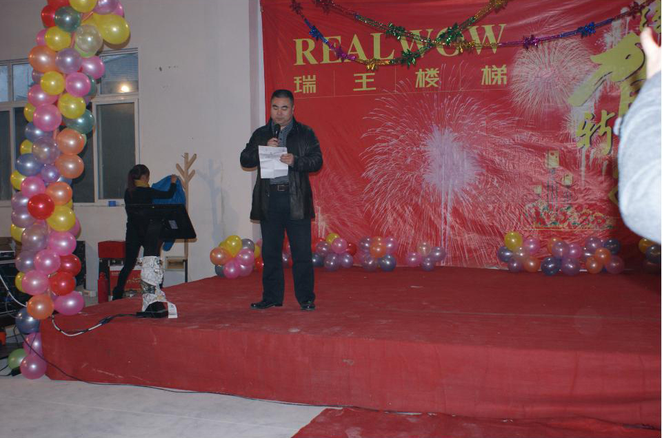 在迎新聯(lián)歡會上瑞王樓梯有限公司董事長王世寬先生發(fā)表祝酒詞、2012年的工作總結(jié)及2013年的公司發(fā)展規(guī)劃。